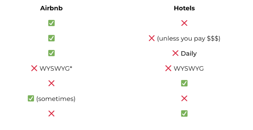 Hotels are great for a weekend. Airbnb can be fun until you realize you’re paying cleaning fees and still have to take out the trash.